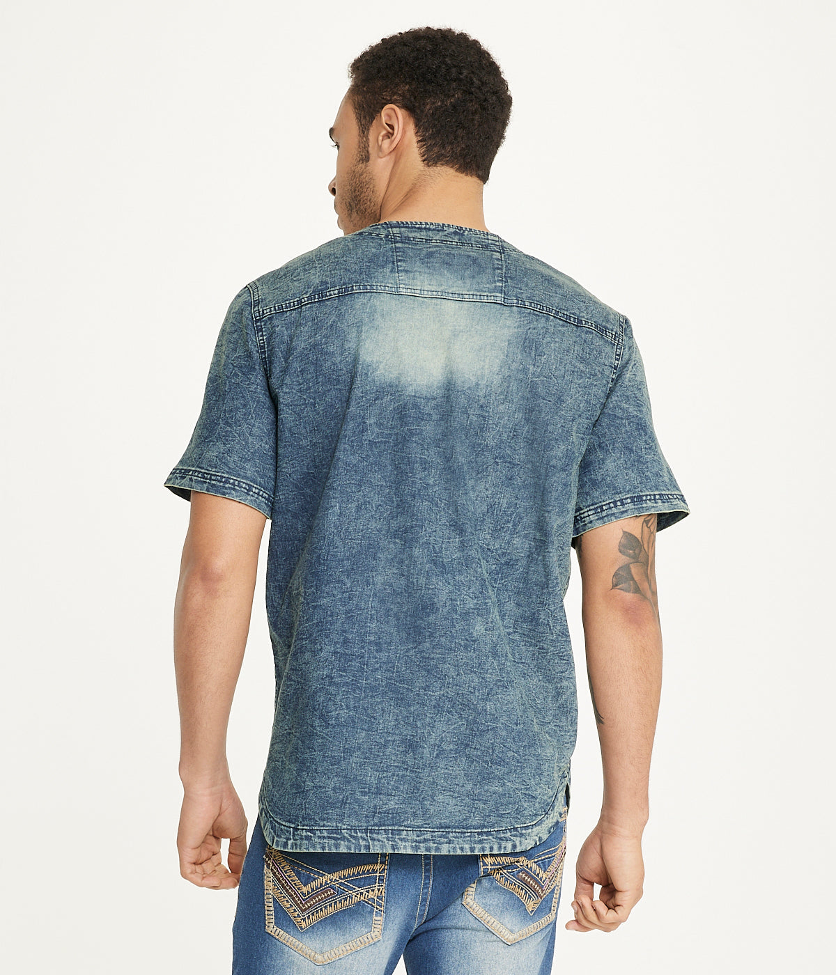 Step up to the plate with the Brooklyn Laundry Men’s Baseball Denim Shirt. Crafted from comfortable cotton. this short-sleeve shirt combines classic denim style with a sporty twist. perfect for a casual and laid-back look. Score a home run in fashion with this versatile and effortlessly cool piece.